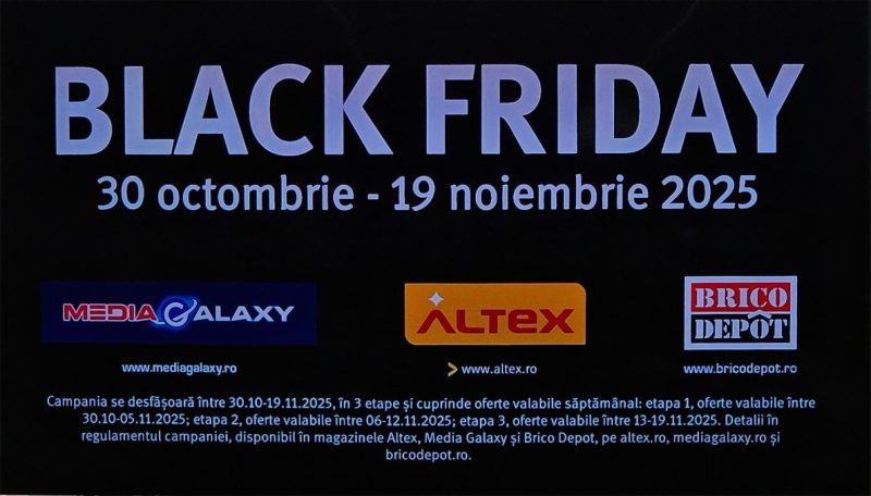 Altex a anunțat astăzi planurile pentru Black Friday 2025 pentru Altex, Media Galaxy și Brico Depot.
