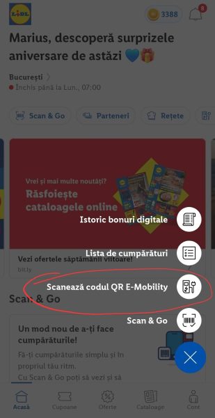 Ca să încarci la stația de încărcare de la Lidl trebuie să ai aplicația Lidl Plus instalată, iar acea aplicație are pe tab-ul “Cont” o secțiune denumită “E-mobilitate”. Ceva de genul: