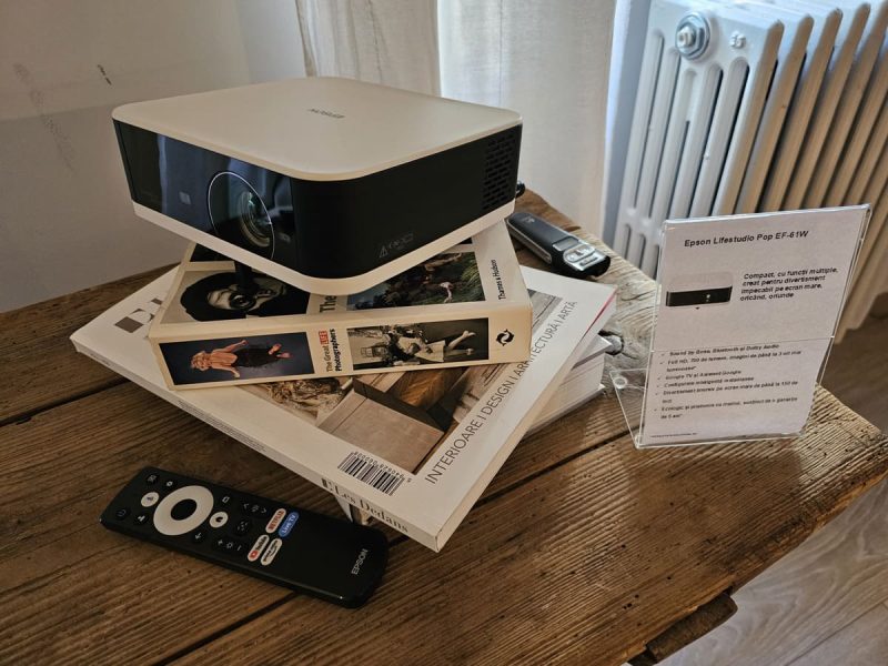 Singura problemă este că prețul recomandat al lui Epson LifeStudio Flex EF-72 este 6.800 de lei, iar la acest preț concurează un cu un TV OLED bun. Cred însă Epson l-a gândit pentru cei care vor și un pic de portabilitate sau care nu vor să își monteze un TV în dormitor dar vor să se uite întinși în pat, la un film pe tavan. Sau pentru cei cărora le place feeling-ul de “cinema”.