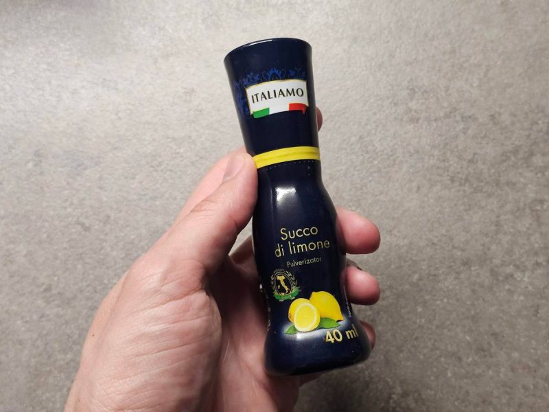 Am găsit și acest pulverizator cu suc de lămâie. L-am luat să-l încerc peste pește sau să dau un pic peste salată. Mai aveau și variante cu ceapă și cu ardei iuți.